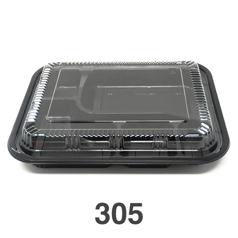 305 Rectangular Black Plastic Bento Box Set 9 3/8 X 7 1/2 X 1 3/8 - 252/Case